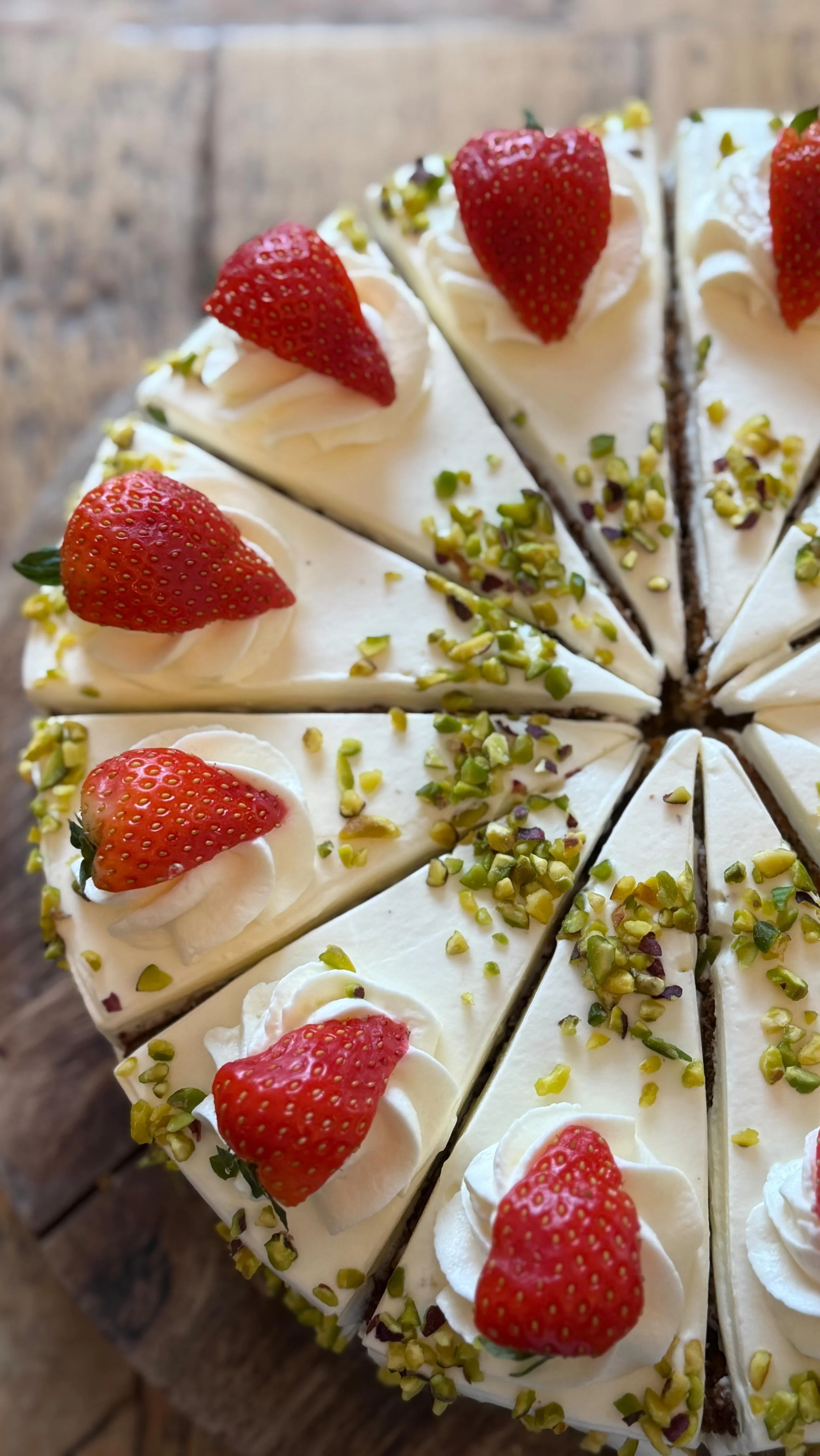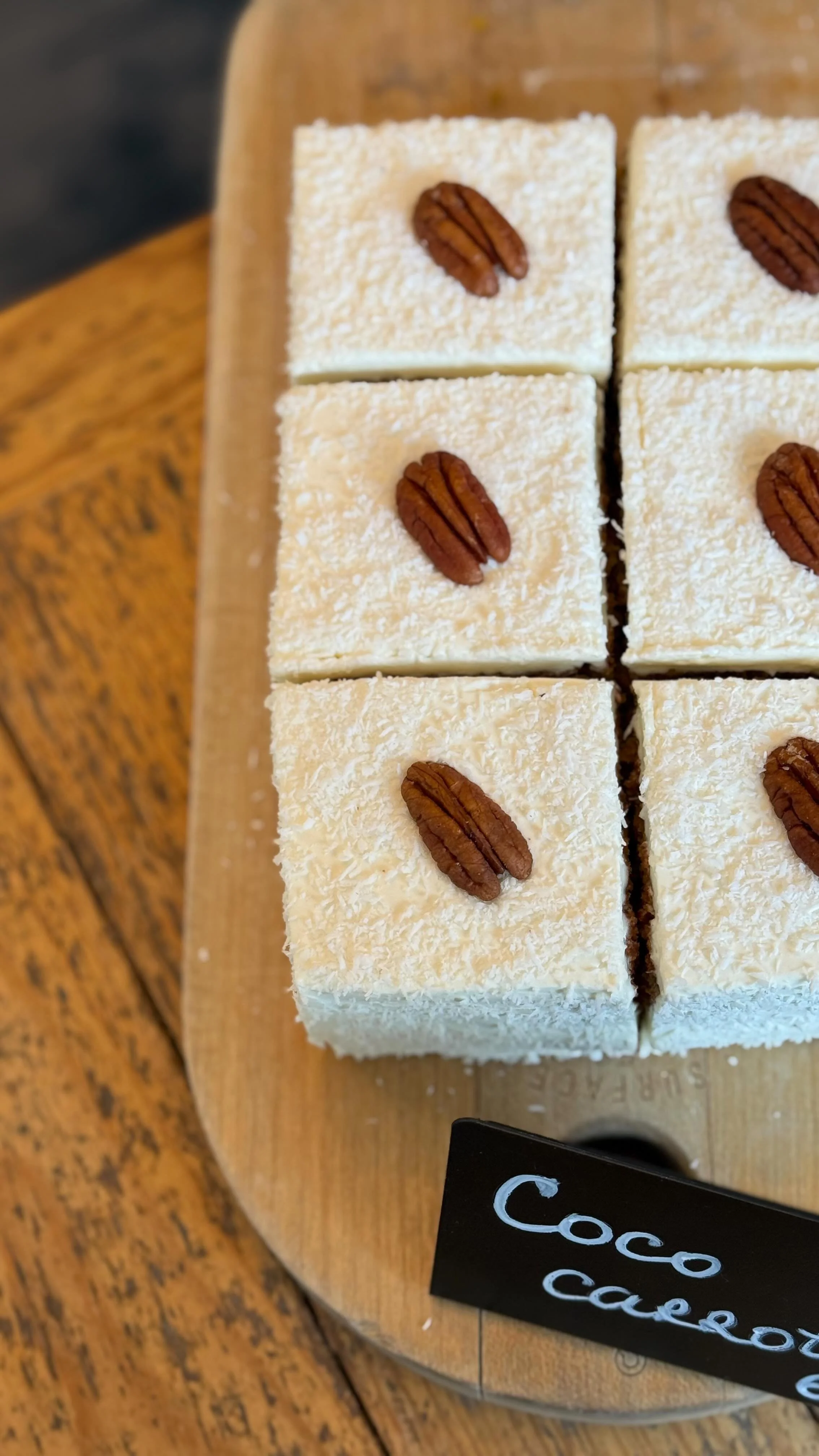 No snow outside… but it’s falling on our carrot cake ❄️🥥